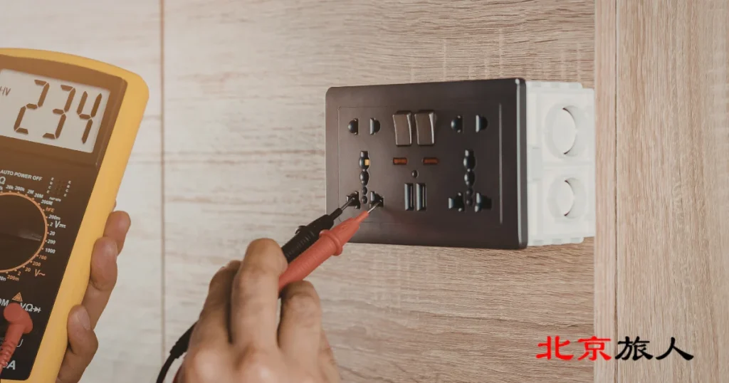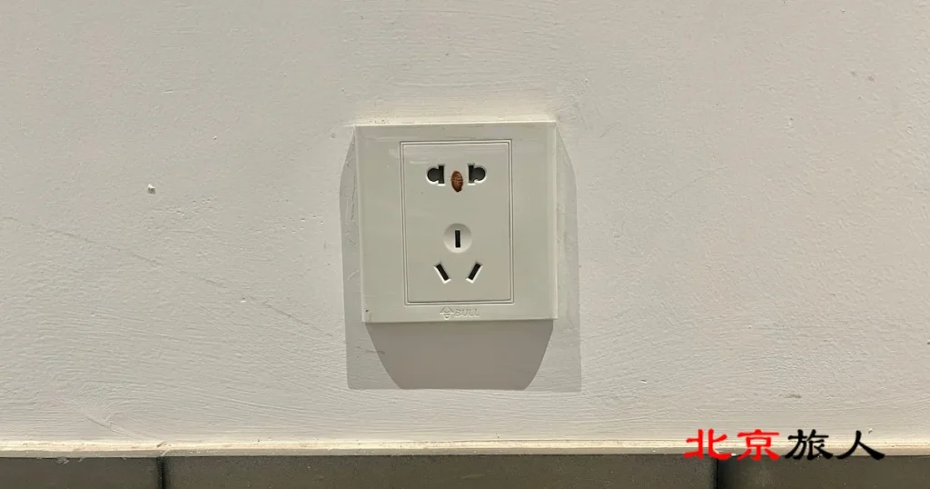 一見すると中国のコンセントと日本のコンセントは形状が違うように見えますが、実は日本のコンセントと同じものを使える形状になっています。正確には中国には7種類ものコンセント形状があります。北京では2又と3又の2種類が上下に並んでいるのが一般的ですが、2又のコンセントに日本の充電器をそのまま刺すことができます。